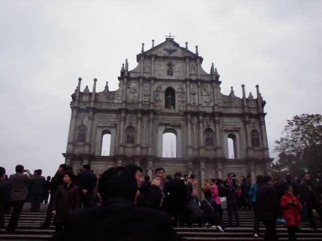 3日目(1月9日) 今日は、2日目よりはゆっくり目に起床しました。 香港の街は、2日目にかなり回ったので、今日は、マカオへ行くことにしました。 朝食後、マカオへ行くために、フェリーターミナルへ行きました。 マカオへは、船で1時間ちょっとで到着します。 フェリーターミナルで乗船券を購入し、出国審査を受けるのですが、前回来た時と同じように、出発時間まで5分くらいしかありません。 普通の出国審査なら、絶対に間に合わないのですが、今回も前回同様、普通に乗船できました。 ただ、私たちと同じタイミングで出国審査を受けていた人がたくさんいたので、船の出発は遅れましたけど。 船の中では、前日の疲れもあり爆睡でした。 目が覚めたら、あとちょっとでマカオという状況で、自分自身、飛行機でも船でも同じだなって思いました。 フェリーが無事に到着後、入国審査を済ませて、いざマカオの街へくり出しました。 ここで、ちょっと豆知識。 香港とマカオは、既に中国へ返還されていますが、返還から50年間は、1国2制度ということなので、返還前と同じく入出国審査があるのです。 フェリー乗り場から中心地へは、タクシーで行きました。 最初の目的地は、世界遺産に登録されている聖ポール大聖堂です。 タクシーの車窓から、マカオの街なみを眺めていると、香港と違う雰囲気の街がありました。 約10分後に<聖ポール大聖堂>に到着すると、私は目を奪われました。と言っても、大聖堂の凄さではないのですが・・・。 では、何に驚いたのでしょう? それは、中国人観光客の多さにびっくりしたのです。 大聖堂の前の階段には、ポーズを取った中国人でいっぱいでした。 なぜポーズをとっているかというと、中国人は、たいてい写真を取る時にポーズを取るみたいです。 もちろん、大聖堂も素晴らしいのですが、どちらが凄いかと言うと、中国人のほうが印象に残ってしまいました。 大聖堂の人の多さに疲れてしまったので、隣にあるモンテの砦へ逃げました。こちらも観光客はいたのですが、スムーズに見ることができました。 <モンテの砦>には、大砲がたくさんあったのですが、ここでもポーズ好きの中国人が、大砲にまたがって写真を撮っていました。 ちなみに、この砦は、丘になっているのですが、景色が良いので、ちょっと落ち着きたい人にはお勧めです。 ただ、丘を上がらないといけないですけどね。 聖ポール大聖堂とモンテの砦の一角から雰囲気のよい道を下っていくとマカオのシンボル的な存在であるセナド広場へ抜けられます。 その時に、ちょうど小学校(くらいだと思います)の終了時間と重なったみたいで、下校中の生徒達と一緒にセナド広場まで行くことになりました。 と言っても、特に話したわけではないんですけど。前回も<セナド広場>に寄ったのですが、中心に噴水があり、周りにたくさんの花が咲いていて、とっても綺麗な広場です。 今回は、旧暦でもクリスマスは関係ないんじゃないのかな?って思ったんですが、噴水のところが大きいクリスマスツリーになっていました。 たぶん、ここでみんな待ち合わせをするような場所なんだと思います。 ![]() この後は、マカオ名物のエッグタルトを食べてから、中国チックの<媽祖閣(マコウミュ)>という寺へ行きました。今までは、どちらかというと西洋風のものが多かったのですが、ここはまさしく中国っぽいです。 中には、大きな岩に大きな文字が刻まれていたり、蚊取り線香の大きい感じの線香があったりと雰囲気が良かったです。 しかし、ここにも中国人観光客がたくさんいました・・・。 ちょうど、その団体と同じような旅程で回っていたようです。中国チックを堪能したので、今度は近代的で、現在のマカオの最大名所となっているマカオタワーへ行くことにしました。 とりあえず、方向的にこっちかなって感じで歩いていたのですが、抜ける道がありませんでした。 ヤバいなって思った時に、おじさんがいたので、言葉が通じないながら身振り手振りで聞いてみると、この先だってジェスチャーで教えてくれました。そしたら、この先はずっと山道・・・。 本当に登るの?って思ったけど、今更引き返すこともできずに登りきると予定外だったのですが、<ペンニャ教会>がありました。 ペンニャ教会は観光名所なのですが、全然観光客がいません。 西洋風の教会で、雰囲気はとても良いし、山からの見晴らしがとても綺麗なので、観光の穴場という意味でお勧めです。 山を登ったのと、ここまで歩きっぱなしで、とても疲れきっていたのですが、見えるところにマカオタワーがあったので、頑張って歩くことにしました。 ちょっとフラフラしつつも20分くらい歩いて<マカオタワー>に到着。マカオタワーは、338mと東京タワーよりも高いのに、展望台の上のところで外を歩くスカイウォークや タワーの先端部へ垂直のはしごを使って昇るマスト・クライム(トレーニングを入れて2時間くらいかかるらしい)など