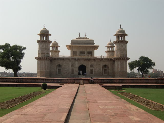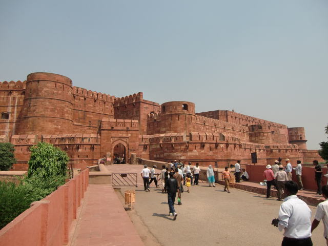 アグラ城(入口のみで入場しない)→ジャマー・マスジット(インドで一番大きなモスク)→ランチ→お土産屋→イティマド・ウッダウラー廟(ベビータージ)→マアーブ・バーグ(黒のタージ・マハルが建つ予定だったヤムナー河の対岸)