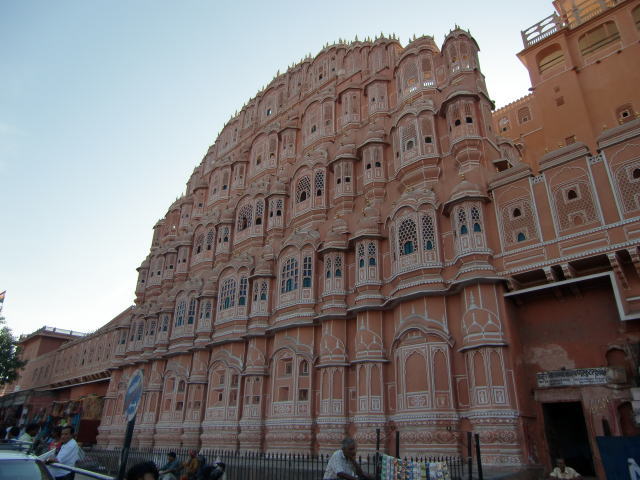 風の宮殿とは、昔、女性が外へ出られなかった時代に小窓から顔を覗かせていた宮殿で、今でも綺麗に残っているピンクシティの象徴と言ってよい建物です。