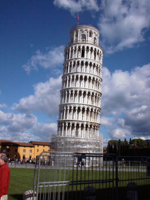 5日目(11月8日) フィレンツェはそんなに大きい街ではないので、先に近くのピサへ行くことにしました。 ピサとは、あの世界遺産であるピサの斜塔がある所です。 私は、ピサの斜塔とは、ピサさんが造った斜塔だと思っていました。 しかし、実際は、ピサにある斜塔だったんですね。 本当に、この旅行で知りました。 朝ホテルを出発し、サンタ・マリア・ノヴェッラ駅からローカル電車を1時間くらい乗るとピサに到着しました。 ピサは、実際に斜塔とその付近にあるドゥオーモくらいしか見るところがないので、日帰りでも全然行ける場所なんです。 斜塔までは、ピサ駅から歩いて20分くらいかかるのですが、途中の建物や川などを見ながら歩いて行くと、あっという間に到着する感じがします。 途中でパニーニを買って、食べながら斜塔まで行きました。 そして、ピサの斜塔に到着。目の前にそびえ建つ斜塔に感無量でした。 本当に傾いているんですよ。 それも、かなりの傾斜です。 それを見ただけでも、ピサに来て本当によかったな〜と思いました。 斜塔には、予約をしていないと昇れないということだったので、敷地内のドゥオーモや洗礼堂などの周辺をぷらぷらしてみると、奥に斜塔のチケットオフィスがありました。 駄目もとで斜塔に上れるかどうかを尋ねてみると、なんてことはなく、すんなりOK! しかし、時間制という事で、20分くらい待つことに。 その間、敷地内の芝生で寝転んでいました。 すっごく気持ち良くて、本当に寝てしまうところでした。 時間が来たので斜塔に入ると、中はらせん階段になっていました。 そこをぐるぐると上って行くと、ついに頂上に到着。 天気が良いこともあり、気分爽快です。 また、ここからの景色はとても綺麗で、開放感もいっぱいです。 しかし、確かに傾いているほうから下を見ると、高い所が苦手な人には、ちょっと怖いかもしれません。 友人は、端に行くのが怖いと言っていました。 満足したので、フィレンツェへ戻ることにしました。 またまたローカル電車を1時間乗り、サンタ・マリア・ノヴェッラ駅に戻ってくると、外は暗くなってきました。 この時に、やっぱり時間が足りないな〜って思いました。 とにかく、今日中にホテルのすぐ近くにあるドゥオーモ周辺を回ること。 ドゥオーモ周辺には、ジョットの鐘楼や洗礼堂などがあります。 ここで疑問点があると思いますので、補足説明しておきます。 ドゥオーモや洗礼堂はピサにもあったと思うのですが、実は、イタリアの至る所にあるみたいです。 街の中心にある教会のことをドゥオーモというらしいです。 ちなみに、フィレンツェのドゥオーモは、とても有名なんです。 その有名なドゥオーモへ行ってみると、正直言って普通の教会でした。 もちろん、彫刻や大理石で造られているのを見ると、とても綺麗ですけど。 それより、この場所は、ある映画の舞台になった所なんです。みなさんは、知っていますか? そうです。「情熱と冷静のあいだ」です。 ここでは、竹ノ内豊とケリーチャンの雰囲気を味わえます。 私たちは、その気分をもっと味わうために、クーポラへ上りました。 クーポラへは、464段の階段を上るのですが、階段の壁には、世界各国の字でたくさんの落書きがありました。 その落書きが名物みたいですが、壁には落書き禁止の看板があり、こういう遺産に落書きしてしまうのはどうかと思いました。 日本人の落書きもたくさんありましたが・・・。 私は、落書きをせずに階段を上って行ったのですが、なかなか頂上まで到着できません・・・。 「着いた?着いた?」と何回言ったかわからない時に、やっと頂上に到着しました。とりあえず、頂上に着いて景色を見るより、ベンチで休憩をしました。 そのくらい、体力的にしんどかったです。 ちょっと落ち着いて景色を見ると、とても綺麗で感動しました。 時間的にちょうど夜景だったので、とても良かったです。 綺麗で古風なフィレンツェの街が一望でき、疲れも一気に吹っ飛びました。 上るのはしんどいですが、かなりお勧めの場所です。 ドゥオーモに満足したので、隣りのジョット鐘楼に上ろうと思ったのですが、結局、ドゥオーモのクーポラと同じかなと思い、外から見てやめました。 そして、夕飯を食べに行く事にしました。 今まで、ご飯に関しては今ひとつの旅なため、フィレンツェ最後の夜は、ガイドブックに載っている地元料理のお店へ行く事にしました。 お店の場所はちょっと遠く、外はかなり寒くなってきていたので、行くのはどうしようかと悩んだのですが、やっぱりおいしいイタリアンを食べたいと思いました。 行く途中に、アノル川にかかるフィレンツェの最古の橋であるヴェッキオ橋がありました。ここは、橋の両側に宝石店が並んでいて、ちょっと面白い感じです。 なぜなら、その店は中に浮かんでいる感じなのです。 橋の横に飛び出している感じなんです。 そして、お店があるはずの場所に