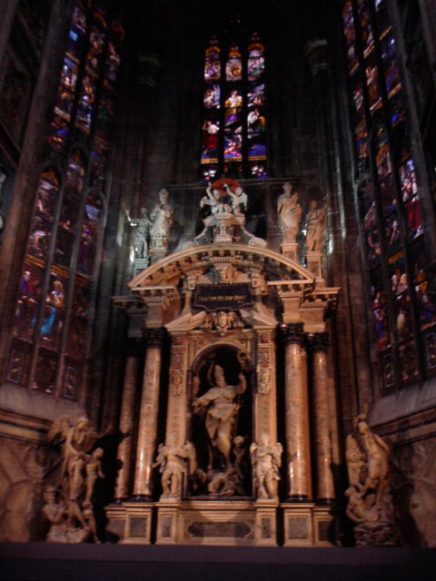 7日目(11月10日) ミラノの朝は、とても寒いです・・・。 イタリアをどんどん北上しているので、寒くなるのは当然なのですが、ちょっと舐めていました。 寒さと体調不良が続いているので、外に出るのが億劫になってきたのですが、イタリア滞在期間も残り少なくなってきたので、頑張って観光をすることにしました。 ちなみに、ミラノはそんなに見所がないので、1日あれば観光名所だけなら見て回れます。 最初に訪れたのは、スフォルツァ城です。なぜここに決めたのかと言うと、いたって簡単。 ホテルから近かったからです。 この城は、ミラノ公国時代の1464年に完成したみたいで、ダ・ヴィンチも建築に加わったみたいです。 裏手は、センピオーネ公園になっていて、ハトに餌をあげているおじいさんや犬の散歩をしているおばあさんがいたりして、とてものどかな場所でした。 朝の散歩にちょうど良かったです。 ただ、寒かったですが・・・。 私たちは、そのセンピオーネ公園からお城へ行ったのですが、お城を出る時に1人のおじいさんに会いました。 そのおじいさんは、70歳過ぎているのにテレビ局のカメラマン(だったかな?)として現役で活躍されている人で、日本に何回か来たことがあって、日本語を話していました。 おじいさんは、出勤途中みたいでしたが、その歳でなんと!?マウンテンバイクに乗って出勤しているんです。 それも、メジャーリーグのヤンキース帽をかぶっていたりと、格好も若いんです。 その歳ですごいですよね。 話もとても面白く、感じの良いおじいさんでした。 自分も歳をとったら、あんなおじいさんになりたいなって思いました。 おじいさんと別れて、ミラノというか北イタリア最大の美術館であるブレア絵画館へ行きました。入り口を入ると、どうも様子が変でした。 なんか大学っぽいので、本当に絵画館なのかな??って感じだったのですが、その通り大学だったのです。 建物の1階が大学(美術学校)であり、2階が美術館になっていたのでした。 そんなことを知らずに入ってしまった私たちは、学生から見たら、何者?また間違ってきたよ!という風に思われていたんでしょうね。 でも、日本もイタリアも学校の雰囲気は同じような感じでした。 そして、気を取り直して、2階に上るとギフトショップがありました。 あれ?入り口は?って思いながら、ギフトショップへ入ってみると、その先に入り口がありました。 ブレア絵画館は、他の美術館と同じように、ルネッサンス美術館です。 ラファエッロなどの作品がたくさんあるのですが、ローマからずっとルネッサンスの絵を見てきて、同じような絵に飽きている自分がいました。 美術が好きな人は、いろいろな違いがわかるのでしょうが、私には、どれも同じに見えてきました。 これではいけないと一通り見たのですが、正直あんまり印象に残っていません。 飽きてきたのと体調が悪いのもあり、集中力がなかったんだと思います。 そして、世界的に有名なスカラ座へ行きました。 スカラ座は、ちょうど改装工事中でした。 ちょっと残念だしたが、仕方がないので、スカラ座を後にしました。 スカラ座の前にはスカラ広場があり、中央にダ・ヴィンチの石像があります。 石像を見ていると、その先に巨大なショッピングモールを発見しました。 さすがはミラノ!ファッションの最前線だけあり、そのショッピングモールには、ブランドショップがたくさん入っていました。 私は、ブランド品に全然興味がなかったので、次の目的地であるヴィットリア・エマヌエーレ・U世のガッレリアへ行こうと思って地図を見てみると、なんと!?ここがそのガッレリアだったのです。このガッレリアは、アーチ型の天井で、道が十字路になっています。 ここには、ブランド品以外にもレストランや書店、マクドナルドなどもあり、たくさんの人がいました。 その中でも、日本人がかなりいました。(これには、ちょっと引きました。) ブランド品に群がる日本人は、イタリア人にどのように写っているのかなって思いました。 時間を見ると既にお昼過ぎ。 ガッレリアの中にあるマクドナルドで昼食をとってから、ドゥオーモへ行きました。 やはりミラノにもドゥオーモがあるんですね。またまた一緒かなって思ったのですが、外観は今までのと違った印象を受けました。 とりあえず中へ入ってみると、荘厳な雰囲気です。 ちょっと喋っただけで、「うるさい!」(たぶんそう言っている)と怒られてしまいました。 中は、やはり教会なのですが、他のドゥオーモと違ったものがありました。 それは、ステンドグラスです。 窓ガラスがステンドグラスになっていて、それに太陽の日差しがあたるととても綺麗です。 これは本当に綺麗で、とても良かったです。 ![]() ここで、ドゥオーモならもちろんクーポラはあるの?って思う人もたくさんいると思います。 もちろん、ミラノのドゥオーモにもクーポラは存在します。 しかし、今回は、外がとても寒か