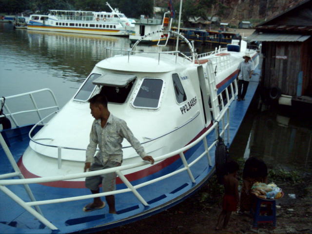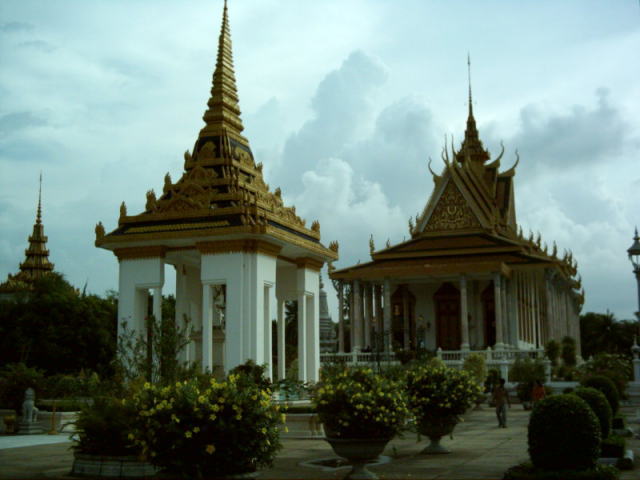 今日は、プノンペンへ向けて、朝5時に起床しました。 出発の準備をし、前日のバイクタクシーを6時に手配していたので、ゲストハウス前で待っていました。 しかし、6時過ぎてもバイクタクシーが来ません。 あまりゆっくりもできないのですが、もうちょっとだけ待っていると、7分遅れで来ました。 良かった〜って思い、早速トンレサップ湖のボート乗り場へ! そうです。スピードボートに乗って、トンレサップ湖から川を下ってプノンペンへ行くのです。 バスのほうが安いのですが、何となくそっちのほうがいいかなって思って、ボートで行くことにしました。 バイクタクシーを20分くらい乗ってボート乗り場へ到着!プノンペン行きのスピードボートは、すぐ目の前にありました。 おなかがすいたので、パンを購入して乗り込みました。 中に入る時に、子供が勝手に荷物を持ち出し、席を案内してきました。 これは、お金を要求してくるなって思っていたら、案の定要求してきました。 もちろん、払いませんでしたけど。 そして、スピードボートは、プノンペンへ向けて出発しました。 走り出すと快適に進んで行き、途中デッキに出ると、とても気持ち良い風を受けることができました。 でも、だんだん寒くなってきたので中に戻り、寝てしまいました。 到着30分前くらいに起きてボーっとしていると、プノンペンへ到着しました。 結局、シェムリアップからプノンペンまで5時間強かかりました。 プノンペンに到着すると、客引きの人数の多さに圧倒されました。 うちのホテルが安いだのなんなのといろいろしつこいので、とりあえず無視して、近くにあるワット・プノンへ行くことにしました。ボート乗り場の敷地を出て、さすがにみんな追って来なかったのですが、一人だけしつこいバイクタクシーがいました。 結局、バイクタクシーと交渉してみると、ワット・プノンへ行った後、泊まろうと思っていたチープホテルまで送ってもらえるということなので、このバイクタクシーで手を打ちました。 バイクタクシーのしつこさの勝利です。(後で仲良くなるんですけどね) ちなみに、ワット・プノンのプノンとは、シェムリアップのプノン・バケンと同じように、山という意味です。 つまり、ワットはお寺なんで、山の上にあるお寺ってことになります。 敷地内は公園になっていて、山を登るとお寺があります。 入場料は、外人のみ有料っぽかったです。ちょっと、なんだよ〜!って思いました。 ワット・プノンを満喫し、ホテルへ向かいました。 歩き方に載っていた写真が綺麗だったので、そのホテルに決めようと思ったのですが、到着してみるとそんなに綺麗ではありませんでした・・・。 でも、料金はそこそこ安いので部屋を見てみると、なんとお湯のシャワーが出ませんでした。 聞いてみると、ちょうど壊れたとのこと。 そんなことはないだろうと思い、値下げ交渉を行ったのですが、海賊みたいに片目に眼帯をしているオーナーが出てきて、インターネットを無料で使って良いから、料金は値下げできないと言われました。 結局、そのオーナーがちょっと怖かったのと、インターネットに日本語フォントまでインストールしてくれると言うことだったので、最初の料金で了解しました。 一応書いておきますが、海賊みたいなオーナーはとてもいい人でした。 少しホテルで休憩してから、プノンペン観光を始めました。 適当にぷらぷら歩いた後、国立歴史博物館へ行ったのですが、特に見所もなさそうな割りに料金が高かったので、外だけ見て帰ってきました。 ![]() そして、すぐ近くにある王宮へ行きました。 王宮へ入るには、カメラを持ち込むのにUS2$が必要だったのですが、強引に持っていないと言い張り、お金を払わずに入りました。(もちろん、入場料は払いましたよ) 敷地内には、王宮とシルバーパゴダという王室の仏教行事が行われるお寺があります。 その後、ベトナム・カンボジア平和記念塔、独立記念塔に寄った後、夕食を食べるためにセントラル・マーケットへ行きました。 セントラル・マーケット近くのカンボジア料理の定食屋で適当に夕飯を食べて、ホテルに戻りました。 シェムリアップからの移動などもあって疲れていたのか、あっという間に寝てしまいました。 |
