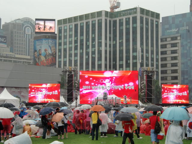 正直、大雨だったので、長居をしたくなかったのですが、韓国サポーターの熱さに翻弄されて、思わず居ついてしまいました。