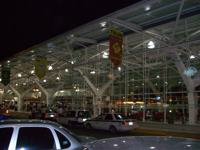 プロローグ 6月にワールドカップへ行ったことによって、私の旅行魂に火がついてしまいました。 そんな時、夏休みを5日間取ってよいという指令が勤務先から出たので、どこかへ行かなくてはいけないっていう使命感にかられてしまい、いろいろ検討した結果、メキシコへ行くことにしました。 最初は、ピラミッドを見ようと灼熱のエジプトを考えたのですが、既にエジプト行きのエアーは満席ということだったので、ピラミッドがあるメキシコにしました。 メキシコには、2003年にメキシコシティとオアハカ(2003年の旅行記)のアステカ文明を見てきたので、今回は、カンクンとメリダ(主に東側のユカタン半島)のマヤ文明を見てこようと思いました。 日程的に、かなり厳しい旅でしたが、充実した良い旅でした。 途中で出てくるスペイン語も見どごろですので、ぜひ最後まで読んでください。 それでは、旅行記スタートです。 (時差があるので、何日目が良くわからなくなっています) 1日目(8月24日) 目が覚めると、久しぶりにアミーゴの国へ行くので、気分がウキウキしていました。 前回のメキシコ(メキシコシティとオアハカ)は、初のアジア脱出+スペイン語圏ということで、結構びびっていたのですが、今回は、特に不安もなく、本当に楽しみにしていました。 成田空港に到着すると、早くメキシコへ行きたいな〜って気分が高まってきました。 早速チェックインカウンターへ向かったのですが、なかなかスムーズにいきません。 先日のイギリスで起きたテロ疑惑の関係で、液体が入っているものは機内持ち込み禁止になったらしいんです。 いつもは、バックパックを機内持ち込みにするのですが、シャンプー等がバックパックに入っていたので、今回は預けることにしました。 正直、ヒューストンで乗り継ぎもあるから、ちゃんとメキシコへ届くのか心配でした。 そして、16時過ぎに出発!予定より30分くらいの遅れでした。 ここからは、約12時間くらい乗って、アメリカのヒューストンへ到着の予定です。 機内で到着時間のアナウンスを聞いた時は、やっぱり遠いな〜って思いました。 まして、目的地のカンクンへは、ヒューストンから更に約2〜3時間乗る訳だし、本当に遠いんです。 メキシコは、社会人には、とても行き辛い場所です。って、私も社会人なんですけど。 飛行機内では、特にやることがありません。 ゲームがありましたが、ドイツの時にゲーム機がフリーズして、画面がずっと光ったままになってしまい、あまり眠れなかったので、今ひとつやる気になりませんでした。 と言うことで、やっぱり寝ようと思い、ウトウトしていたところ、突然「バッターン!」って私のシートが後ろに倒れました。 何が起きたのか理解できず、この飛行機大丈夫??って本気で思ったのですが、実は、隣に座っていたコリアンのおじさんが、間違って私のリクライニング(座席の横についている)ボタンを押してしまったのです。 これには、本当にびっくりしました。 ちょっと韓国語で文句を言おうと思いましたが、ネタになったのでやめました。韓国語も良くわからないですし。 すっかり目が覚めてしまったので、映画「アイスエイジ」を見ていたら、機内食がやって来ました。今回は、コンチネンタル航空で、こんな料理(→)でした。 機内食は、どこの航空会社もたいして美味しくないですよね。 ちなみに、早朝(軽食)と到着前にも機内食が出てきました。 「アイスエイジ」を見てからは、いつも通り爆睡で、あっという間にヒューストンに到着です。 日付変更線を越えていることもあり、今が何日で何時なのか良くわからなくなっていましたが、とにかく長時間飛行機に乗っていたことだけは事実で、体の節々が痛かったです。 ヒューストンでは、乗り継ぎでも入国審査を受けなくてはなりません。 アメリカは、入国審査に関して厳しい国だし、審査官は黒人だし、みんな指紋を取られているし、大丈夫かな〜・・・ってちょっと不安がありました。 しかし、実際に入国審査を受けてみると、黒人の審査官は、とてもフレンドリー! 片言の日本語も飛び出し、逆に楽しい感じで審査が終わりました。 ヒューストンの空港内で少しお茶でもしようと思ったのですが、私には何も飲めない(買えない)ことが分かりました。 何で??アンチアメリカだから?って思った人もいるかもしれませんが、実は、USドルを持っていなかったのです。 よく考えると、カードを使えば良かったんですけどね。 と言うことで、何もやることが無いので、おとなしくカンクン行きの飛行機に乗り込みました。 約2〜3時間後にカンクンに到着。現地時間で18時過ぎでした。 とりあえず、銀行で両替をしようと思い、歩き方に比較的レートの良いと載っていた銀行へ行くと、日本円は両替できないと言われてしまいました・・・。 私は、日本円しか持っていかなったので、どうしようと思いましたが、できないものは仕方がないので、隣にあったATMで現地