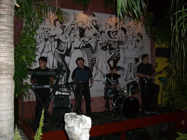 バナナチップスも食べていたので、更に、おなかがいっぱいだったのですが、ちょうど始まった演奏をバックに、ユカタン名物ソパ・デ・リマを食べました。