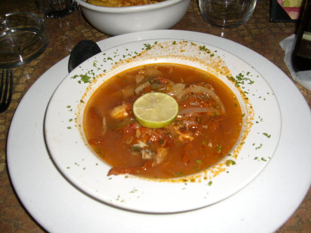 どうせなら、早く始まってよ〜って突っ込みたかったのですが、その時に、店員がソパ・デ・リマを持ってきました。