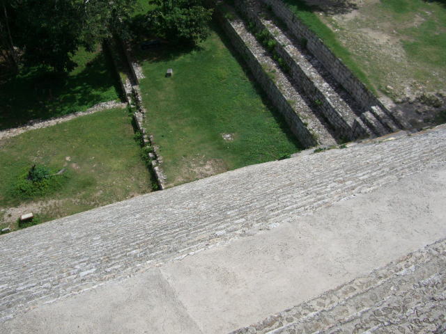 グラン・ピラミッドにも飽きてきたので、急な石段を降りることにしたのですが、正直、落ちたら死ぬよ!って突っ込みたくなるくらい急な石段です。