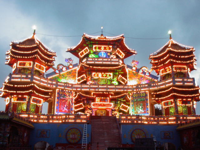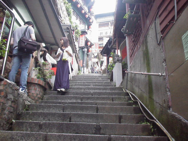 3日目(8月30日) 今日は、前回や前々回で訪れなかった場所へ行くことにしました。 まず向かったのは、台北から東へ10kmの九フン(人べんに分ける)です。 行き方がわからなかったので、とりあえず台北駅の観光案内所へ行き、つたない英語で確認をしたら、電車で行くよりもMRTの中孝復興駅前からバスで行けば、直接行けるということでした。 それなら、その方が楽だと思い、バスで行くことにしました。 バス停に着くと、日本人っぽい女の子が、「ここで合っているのかな?」って顔をして時刻表を見ていました。 日本人だと思ったので、ちょっと声をかけてみると、私と同じように九フンへ行くと言うので、一緒に行くことにしました。 バスに乗り込み、その人とちょっと話した後、朝で眠かったのもあったので、ぼーっとしていました。 結局、1時間くらいで無事に到着。 九フンに到着後、その女の子と別れました。 ここで、九フンについて簡単に書いておきます。 九フンは、山の中にあって、以前は金鉱で栄えた町のようです。 中央に長い階段があって、そこを中心に回ると歩きやすいと思います。 ちなみに、台湾のヒット映画「非情城市」の舞台になったことで、人気の観光地になっているみたいです。 自分は、映画のことを良く知らないで来てしまったんですけどね。 到着して、とりあえず流れに沿って歩いていくと、ずっと続くお土産屋。 やっぱり、観光地なんですね。 でも、雰囲気がある店もあるので、ぷらぷらとお店を見ながら歩いていました。 そして、九フン最大の名所である非情城市へ行きました。非情城市とは、九フンの説明にも書いたように、台湾のヒット映画のタイトルにもなったレストランです。 真ん中の階段の通り沿いにあるため、とてもわかりやすく、台湾人は、みんなここで写真を撮っています。 私は、正直、どんな映画か知りませんが、せっかくなんで、ここで杏仁豆腐を食べました。 やはり観光名所というだけあって、結構高かったです。 その後、こちらも観光名所ということで、昇平戯院へ行きました。これは、昔の映画館というだけで、たいしたものではありません。 正直、廃墟となっていて、雰囲気があると言えばありますが、微妙な感じです。 特に博物館というわけではないので、中にも入れません。ここまで見て、町の雰囲気はまずまずなのですが、全体的には今ひとつ盛り上がりのない町にちょっと飽きてしまいました。 もう帰ろうかどうか悩んだのですが、金鉱で栄えた町の歴史を垣間見れる九フン金鉱博物館へ行きました。 入り口へ行ってみると、誰もいない・・・。 中を覗いてみると、そこに普通に住んでいる感じのおじいさんがテレビを見ていました。 どうしようかと思いつつ、入り口で待っていると、おじいさんが気づいてくれたみたいで、何か言ってきました。 でも、中国語だったので、何もわからずあたふたしていると、日本語で「日本人?」と聞いてきたので、「はい。」って答えると、なんだか嬉しそうに案内を始めました。まず、入り口にあったトロッコ列車を見せさせられ、写真を撮るように言われました。 ちょっと焦ったのですが、言われたとおり写真を撮ってから博物館の中に入ってみると、おじいさんが急にいなくなってしまいました・・・。 どうしようかと思いつつも、中に展示してある金鉱石を見ていたのですが、全然興味がないため、あっという間に飽きてしまいました。 結局、これだけか・・・って思い、帰ろうとしたところにおじいさんが復活! 2階へ上がるように言われて、何か良くわからないまま2階へ行きました。 2階に上がると九フン(金鉱)の歴史のビデオ(中国語)を見せられ、何を言っているかさっぱりわからなかったんですが、雰囲気だけを味わいました。 正直、ここでは、もう帰りたかったです。 そして、やっと終わったと思うと、おじいさんはとても嬉しそうに採金作業を実演をしてくれました。 私は、社会科見学のようにこの実演を見ていたら、私にも体験をさせてくれました。良くわからないながらも、ちょっと楽しい時間を過ごせました。 ちなみに、ビデオ上映中に台湾人の客がきたので、おじいさんは日本語と中国語を繰り返して説明して大変そうでした。 最初は、しょぼい博物館だなって思っていたんですが、おじいさんが一生懸命説明してくれたし、体験もできたので、九フンでの良い思い出になりました。 実演が終わって博物館を出ると、もう1時間以上も経っていました。 見た目は汚いし、観光客も全然いませんが、何気にお勧めなのがこの博物館です。 九フンへ行った時は、ぜひ寄ってみてください。 これで、九フンは終わりという感じだったので、九フンからバスで10分くらいのところににある兄弟町の金瓜石へ行きました。 この金瓜石も金鉱で栄えた町のようですが、九フンよりは観光客も少なく、九フンのついでに来るといった感じの町みたいです。バスが到着すると、山の上に神殿の