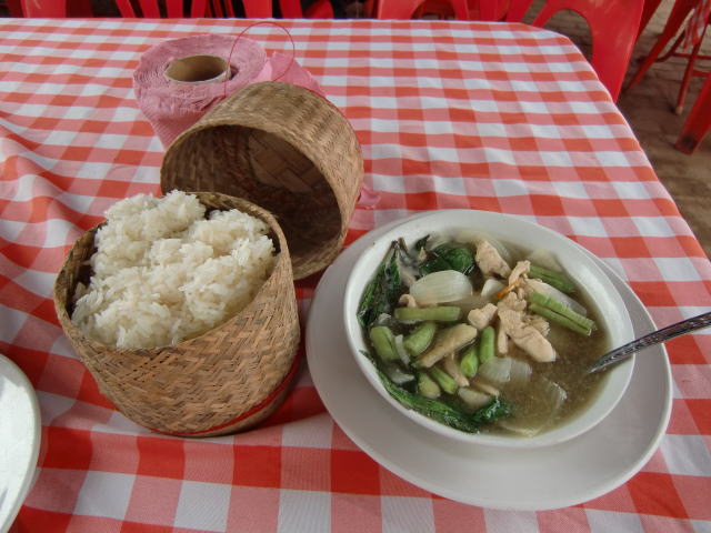 ブランチは、もちろんラオス料理で、ゲンキョウワンという青唐辛子とココナッツのスープカレーとカオニャオというラオスの主食のもち米です。
